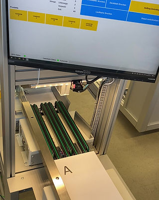 The operator places the individual components in the correct position on the input module. The content of the respective order is displayed directly on the screen. A camera scans the items.